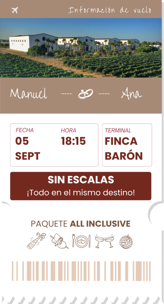 La ceremonia, el convite y la fiesta se celebra en el mismo lugar, en la Finca Barón.